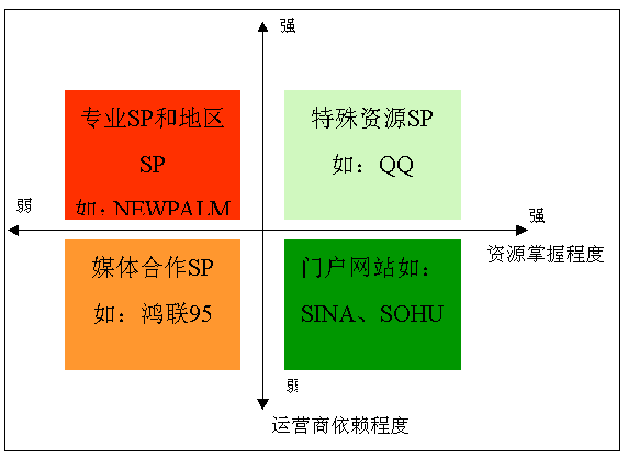 通常有風(fēng)險(xiǎn)資本注入,主要通過本地接入獲得運(yùn)營商推廣支持而產(chǎn)生收入,大多具20個(gè)省以上短信接入并在當(dāng)?shù)卦O(shè)有市場人員,其它地區(qū)采用全網(wǎng)接入發(fā)展業(yè)務(wù),與運(yùn)營商關(guān)系密切,業(yè)務(wù)主要以娛樂服務(wù)為主:華友、掌中萬維、靈通、空中網(wǎng);