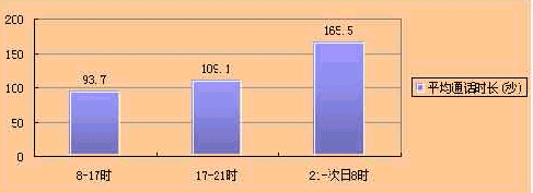 在同一調(diào)查中還有電話(huà)用戶(hù)在一天內(nèi)不同時(shí)段平均通話(huà)時(shí)長(zhǎng),具體情況見(jiàn)圖2所示。