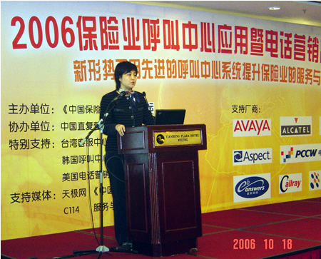 。。2006年10月18日,2006保險(xiǎn)業(yè)呼叫中心應(yīng)用暨電話營銷高峰研討會在北京天鴻科園大酒店隆重召開,以下是K1主題演講實(shí)錄: