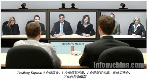 在系統(tǒng)設(shè)計(jì)中,Experia整合了思科、惠普以及其他公司的遠(yuǎn)程呈現(xiàn)設(shè)計(jì)理念,采用了泰德公司開(kāi)發(fā)團(tuán)隊(duì)研發(fā)的獨(dú)有技術(shù)。Experia系統(tǒng)包含4臺(tái)6000 MXP信號(hào)編解碼器、4臺(tái)高分辨率攝像頭和3臺(tái)50英寸的等離子顯示器,用戶播放視頻內(nèi)容,1臺(tái)50英寸等離子顯示器安放在中央視頻顯示屏幕下方,顯示數(shù)據(jù)信息。同時(shí),Experia系統(tǒng)還包括了遠(yuǎn)程呈現(xiàn)控制臺(tái),為用戶提供了三種木制造型選擇,控制臺(tái)上的3臺(tái)麥克風(fēng)構(gòu)成了音頻系統(tǒng)。系統(tǒng)每通信站點(diǎn)支持6位與會(huì)者參與會(huì)議。與其它遠(yuǎn)程呈現(xiàn)系統(tǒng)一樣,Experia在聲音和圖像方面的性能非常出色,系統(tǒng)使用簡(jiǎn)單、穩(wěn)定可靠。泰德的遠(yuǎn)程呈現(xiàn)系統(tǒng)雖然采用與寶利通類似的H.323/SIP標(biāo)準(zhǔn),在系統(tǒng)與業(yè)界標(biāo)準(zhǔn)的協(xié)同工作以及用戶之間互聯(lián)互通的性能方便似乎更勝一籌。