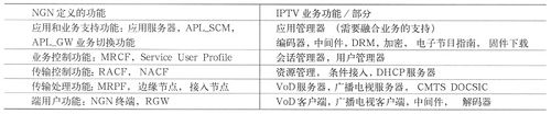 表1NGN業(yè)務功能和IPTV業(yè)務功能的關(guān)系