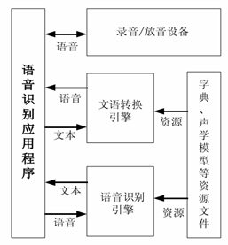 上圖示為Wanson ASR Chip1.0 的系統(tǒng)框圖。如圖所示,由系統(tǒng)所構(gòu)筑的語(yǔ)音識(shí) 別應(yīng)用程序和四部分相結(jié)合。對(duì)語(yǔ)音識(shí)別而言,將接收到的語(yǔ)音文件包通過錄音