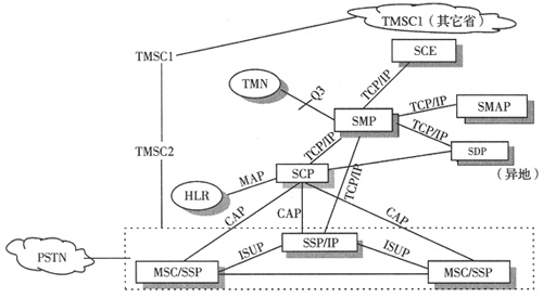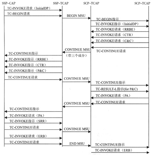 移動智能網應用部分(CAP)是遠程操作服務單元(ROSE),ROSE規(guī)程包括在TCAP成份子層中,并作為單位數(shù)據(UDT)放在SCCP中傳送。我國CAP是建立在以TCAP和SCCP為基礎的No.7信令網傳送的,CAP受限于SSP-SCP、SCP-IP之間的接口規(guī)范。