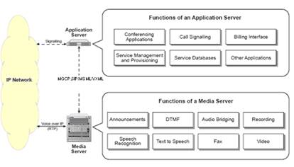 在這個網(wǎng)絡中,業(yè)務平臺需要引入通用的媒體資源處理平臺:IP媒體服務器。IP媒體服務器用來提供音頻,視頻,DTMF,TTS/ASR,F(xiàn)AX等媒體處理功能,為整個業(yè)務網(wǎng)絡提供增值服務。