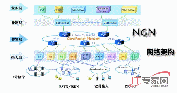 下一代網(wǎng)絡(NGN)是指以軟交換為代表,IMS為核心框架,能夠為公眾靈活提供大規(guī)模視訊話音數(shù)據(jù)等多種通信業(yè)務,以分組交換為業(yè)務統(tǒng)一承載平臺,傳輸層適應數(shù)據(jù)業(yè)務特征及帶寬需求,與通信運營商相關,可運營、維護、管理的通信網(wǎng)絡。
