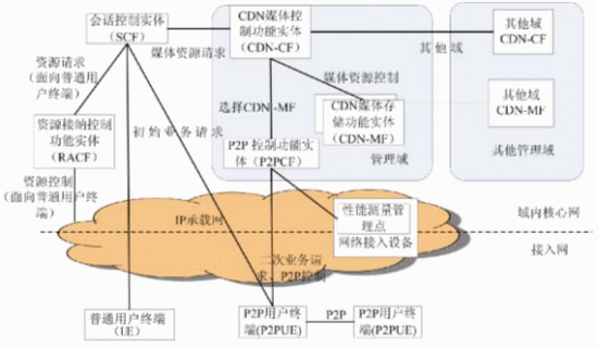 。7)資源接納控制功能(RACF):負(fù)責(zé)為非P2P用戶的流媒體內(nèi)容下載進(jìn)行資源預(yù)留,以保障流媒體業(yè)務(wù)質(zhì)量。資源接納控制功能為NGN中定義的功能實(shí)體。