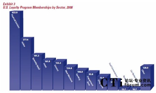 在美國(guó),忠誠(chéng)度營(yíng)銷(xiāo)應(yīng)該用為廣泛的五個(gè)行業(yè)/領(lǐng)域是金融服務(wù)(銀行、保險(xiǎn)、證券、基金等)、航空、專(zhuān)門(mén)零售(例如各類(lèi)的專(zhuān)賣(mài)店、品牌連鎖)、酒店及百貨。值得一提的是,近兩年來(lái),金融服務(wù)行業(yè)在忠誠(chéng)度營(yíng)銷(xiāo)的應(yīng)用發(fā)展迅速,各類(lèi)忠誠(chéng)度計(jì)劃的參與人數(shù)由2006年的2.388億上升到2008年的4.22億,這個(gè)增長(zhǎng)主要是由各類(lèi)具備信用卡、借記卡功能的聯(lián)名卡發(fā)行所致。