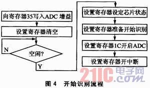 、坶_始識別。設(shè)置幾個相關(guān)的寄存器,即可開始語音的識別。圖4是相關(guān)的流程。ADC通道即為麥克風(fēng)輸入通道,ADC增益也就是麥克風(fēng)音量,可設(shè)定值00H~7FH,建議設(shè)置值為40H~6FH,值越大代表MIC音量越大,識別啟動越敏感,但可能帶來更多誤識別;值越小代表MIC音量越小,需要近距離說話才能啟動識別功能,好處是對遠處的干擾語音沒有反應(yīng)。本文中設(shè)定值為43H。