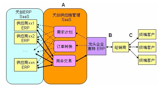 (1)改變傳統(tǒng)分散的供應(yīng)商的購銷環(huán)節(jié),將企業(yè)之間的購銷關(guān)系鎖定在特定的公共的供應(yīng)鏈平臺上。即通過SaaS供應(yīng)鏈管理平臺,有機(jī)地、相互依賴地鏈接在一起,協(xié)同共贏實現(xiàn)真正意義上的電子商務(wù)交易。