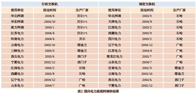 通過對目前國內電力系統(tǒng)網省一級的用戶使用交換機設備品牌進行電話調研統(tǒng)計,從整體上更能體現(xiàn)交換設備技術發(fā)展走向,為軟交換應用的可行性評估提供可靠的數(shù)據(jù)。表2為重點調研的匯總結果。