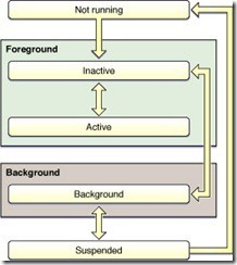 為了節(jié)約電池的電量,智能手機(jī)上的操作系統(tǒng)的一個(gè)基本策略是,盡量減少正在運(yùn)行的程序,這個(gè)道理很簡(jiǎn)單,運(yùn)行的程序越多,需要耗費(fèi)的 CPU 計(jì)算時(shí)間就越多,電量就省不下來。下面的圖是蘋果 iOS 設(shè)備應(yīng)用程序調(diào)度狀態(tài)圖,事實(shí)上蘋果設(shè)備是除了用戶正在操作的程序,其他打開的程序進(jìn)程盡可能都放到“掛起(Suspended)”的狀態(tài)下。在“掛起”的狀態(tài)下面,程序進(jìn)程處在休眠狀態(tài),不耗費(fèi) CPU 計(jì)算能力。當(dāng)用戶沒有對(duì)設(shè)備進(jìn)行操作的時(shí)候,整個(gè)系統(tǒng)處在休眠的低電狀態(tài)。(這里進(jìn)程的意思是:程序運(yùn)行實(shí)例)