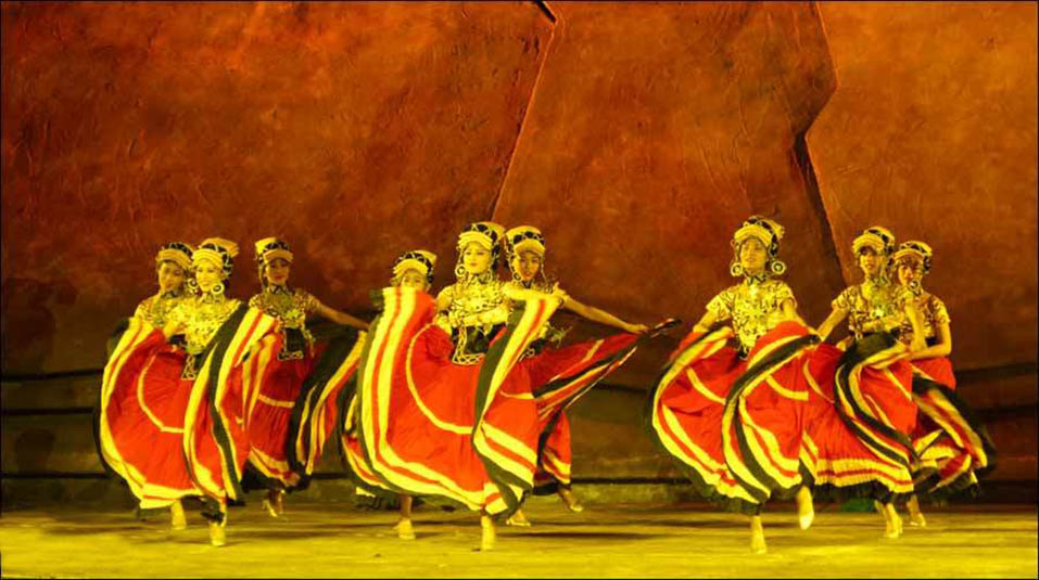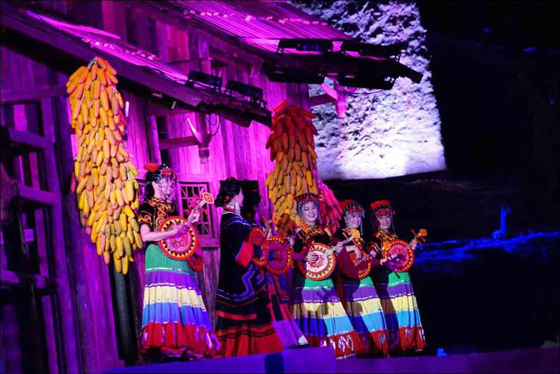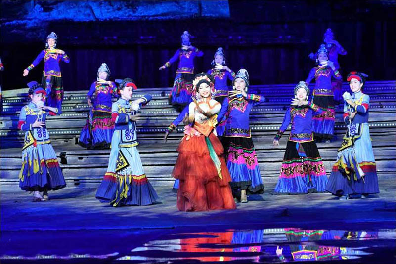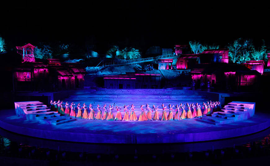 《阿惹妞》是目前中國(guó)第一臺(tái)火秀實(shí)景劇,該劇全長(zhǎng)60分鐘,共分為5個(gè)篇章,從民族源起的腳步展開,講述了阿惹妞情與愛的生命畫卷。該劇以“火”作為彝族的生命圖騰貫穿始終,呈現(xiàn)了“火”作為一個(gè)民族情感的載體而展開的生命傳奇,具有濃厚的彝族文化風(fēng)情。