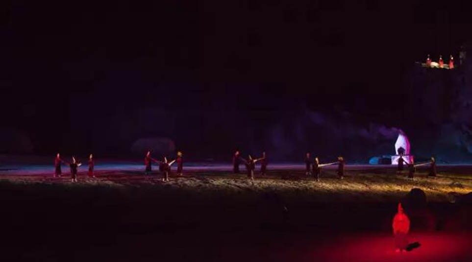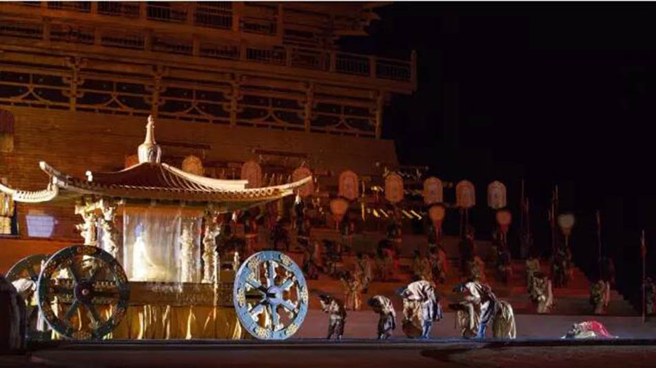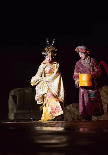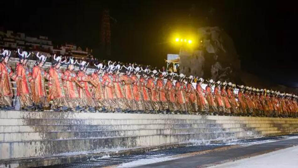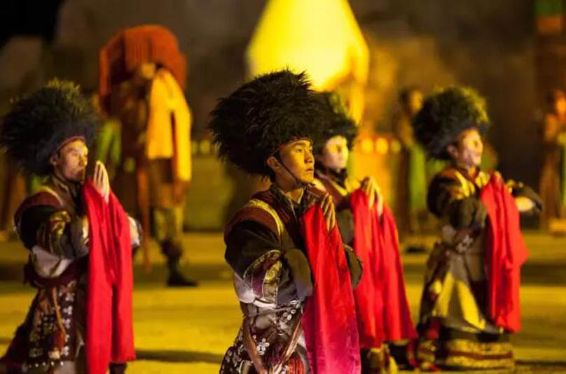 大型藏族實(shí)景劇《文成公主》主要講述文成公主入藏歷經(jīng)艱難的征途和曲折起伏的心路歷程,演繹大唐盛世的愛(ài)情傳奇,傳唱漢藏和美的動(dòng)人史歌。該作品分為“大唐之韻”、“天地梵音”、“藏舞大美”、“藏舞大美”及“藏舞大美”五幕,深度融入漢藏歷史文化、民族風(fēng)俗、自然景觀等,引入了大唐歌舞和流傳久遠(yuǎn)的藏舞、藏戲、佛號(hào)念唱等,通過(guò)人工舞臺(tái)與自然山水的結(jié)合,用高科技的手段呈現(xiàn)非物質(zhì)文化遺產(chǎn),把戲劇、音樂(lè)、舞蹈和現(xiàn)代舞美手段融為一爐,構(gòu)成華美樂(lè)章。