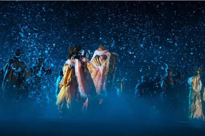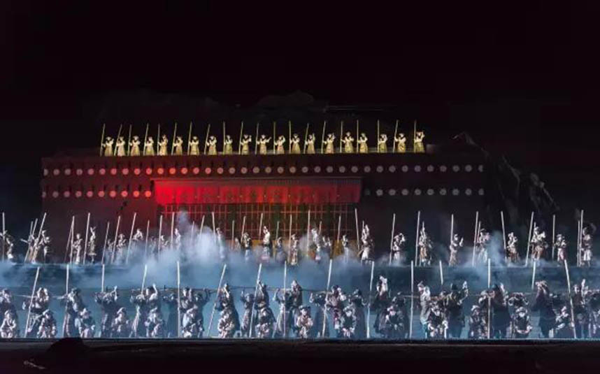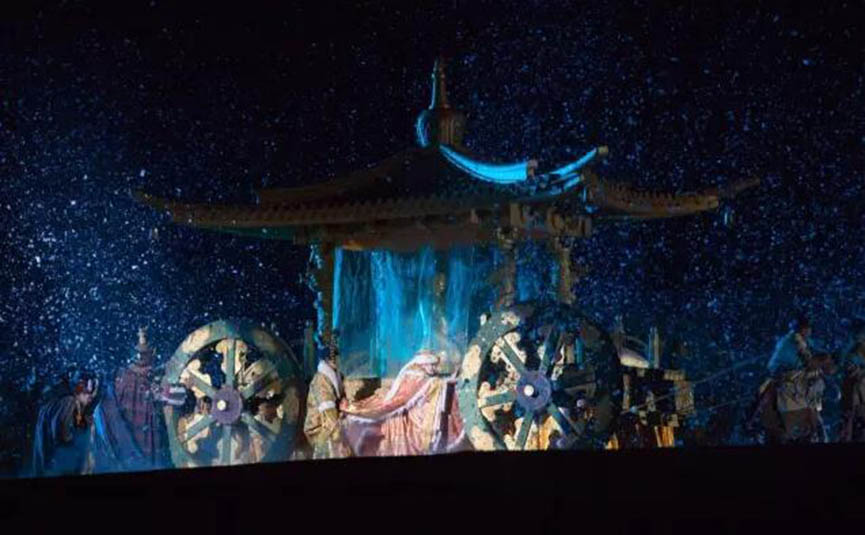 《文成公主》 藏文化大型史詩(shī)劇一直在不斷地進(jìn)行創(chuàng)新和升級(jí),在燈光方面,劇組使用更多元化的色彩,營(yíng)造出華美而奇幻的舞臺(tái)效果,并運(yùn)用更多的高科技手段,使演出效果更驚艷、更富有傳奇色彩。例如在文成公主碎寶鏡這一段,將通過(guò)特殊的舞美燈光設(shè)備,將寶鏡摔在地上的場(chǎng)景表現(xiàn)得更逼真,寶鏡碎片飛起來(lái)的場(chǎng)景,也能夠通過(guò)高科技表現(xiàn)出來(lái),現(xiàn)場(chǎng)感更強(qiáng)。
