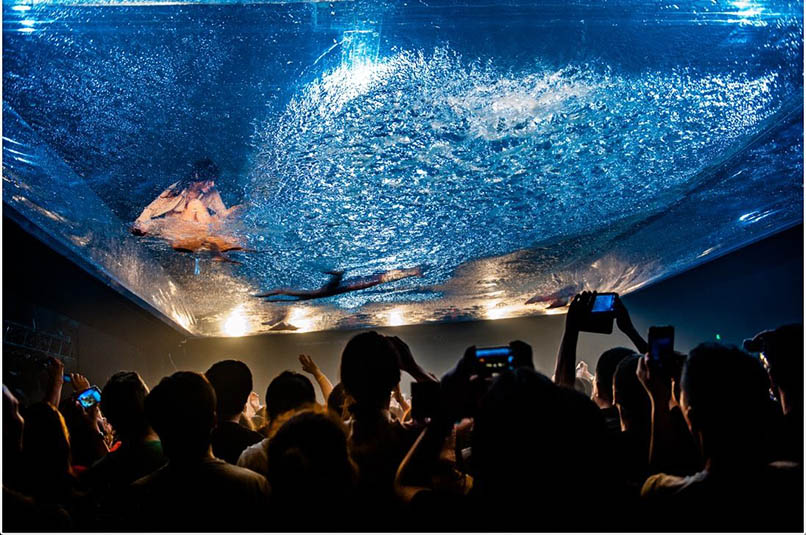 《極限震撼》中有一幕演出是4位女舞者在一個(gè)裝了一層水的薄膜上濕身熱舞,水膜高高架起,觀眾稍微一抬頭就能觀賞到女舞者的曼妙舞姿,更允許觀眾們與舞者們零距離接觸。這種現(xiàn)場(chǎng)互動(dòng),中國觀眾相對(duì)西方觀眾更為含蓄內(nèi)斂,對(duì)此,舞者Laila表示現(xiàn)場(chǎng)他們會(huì)用特有的方式去調(diào)動(dòng)觀眾的情緒。