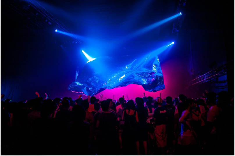 另外,表演者與觀眾零距離互動(dòng)也同樣是《極限震撼》的一大特色。在節(jié)奏感極強(qiáng)的音樂背景下,演員甚至?xí)挛枧_(tái),深入人群,調(diào)動(dòng)觀賞者積極性,用泡沫板拍打觀眾頭頂,與觀賞者共舞,使其成為“秀”的一部分。