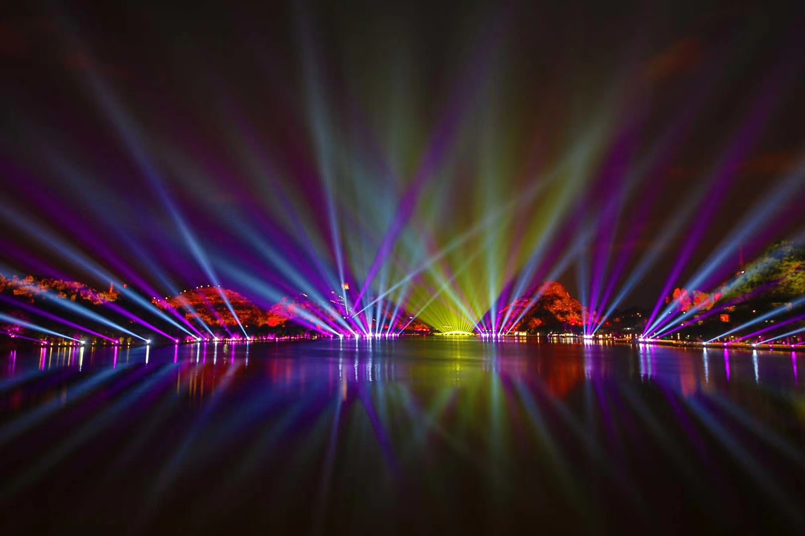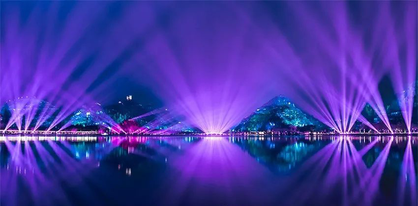 據(jù)悉,該項目在傳統(tǒng)照明的基礎上,巧妙地利用了雷達動過捕捉技術(shù)、外網(wǎng)視頻交互技術(shù)與光影配合,同時在游覽動線上設計了互動投影裝置和LED成像矩陣裝置,展現(xiàn)出特殊的震撼性視覺體驗效果等,描繪出一幅美麗的山水畫卷。山水湖景燈光秀《明鑲西秀 意寫江南》這一場利用現(xiàn)代智能燈光設計與技術(shù),音樂與現(xiàn)代光影配合的極致演出,打造出具有安順特色的夜景風姿,成為了貴州安順虹山湖一張靚麗的名片。