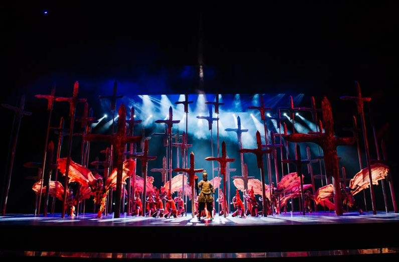 在《秦》秀燈光效果中,總制作著名燈光設(shè)計(jì)沙曉嵐采用獨(dú)特的燈光風(fēng)格,時而黑白調(diào),時而金碧輝煌,將大秀的感情色彩表現(xiàn)得淋漓盡致,再現(xiàn)大秦帝國的恢弘。
