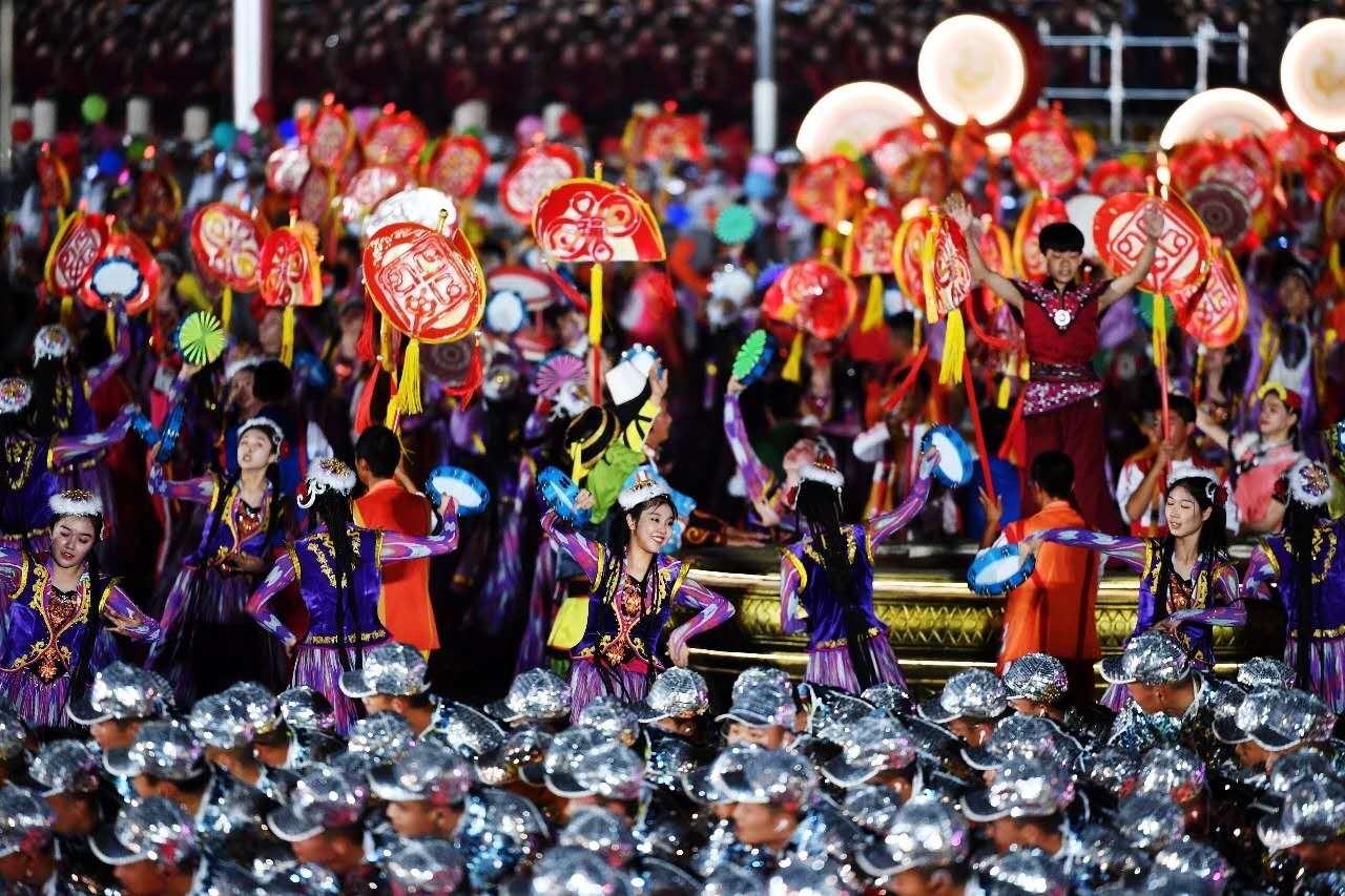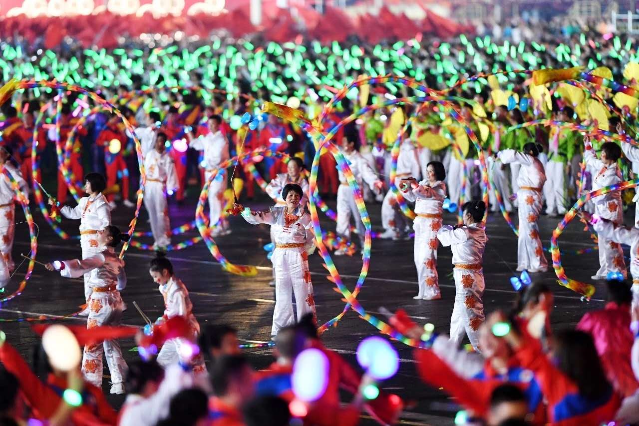 10月1日晚上,在天安門廣場(chǎng)舉行國(guó)慶70周年聯(lián)歡活動(dòng),14億人民的激情被點(diǎn)燃。其中聯(lián)歡活動(dòng)由“紅旗頌”“我們走在大路上”“在希望的田野上”“領(lǐng)航新時(shí)代”4個(gè)篇章。整個(gè)活動(dòng)由主題表演、中心聯(lián)歡表演、群眾聯(lián)歡和煙花表演四個(gè)功能表演區(qū)組成。據(jù)了解,今年的群眾聯(lián)歡活動(dòng)由近6萬(wàn)余名首都各界群眾組成
