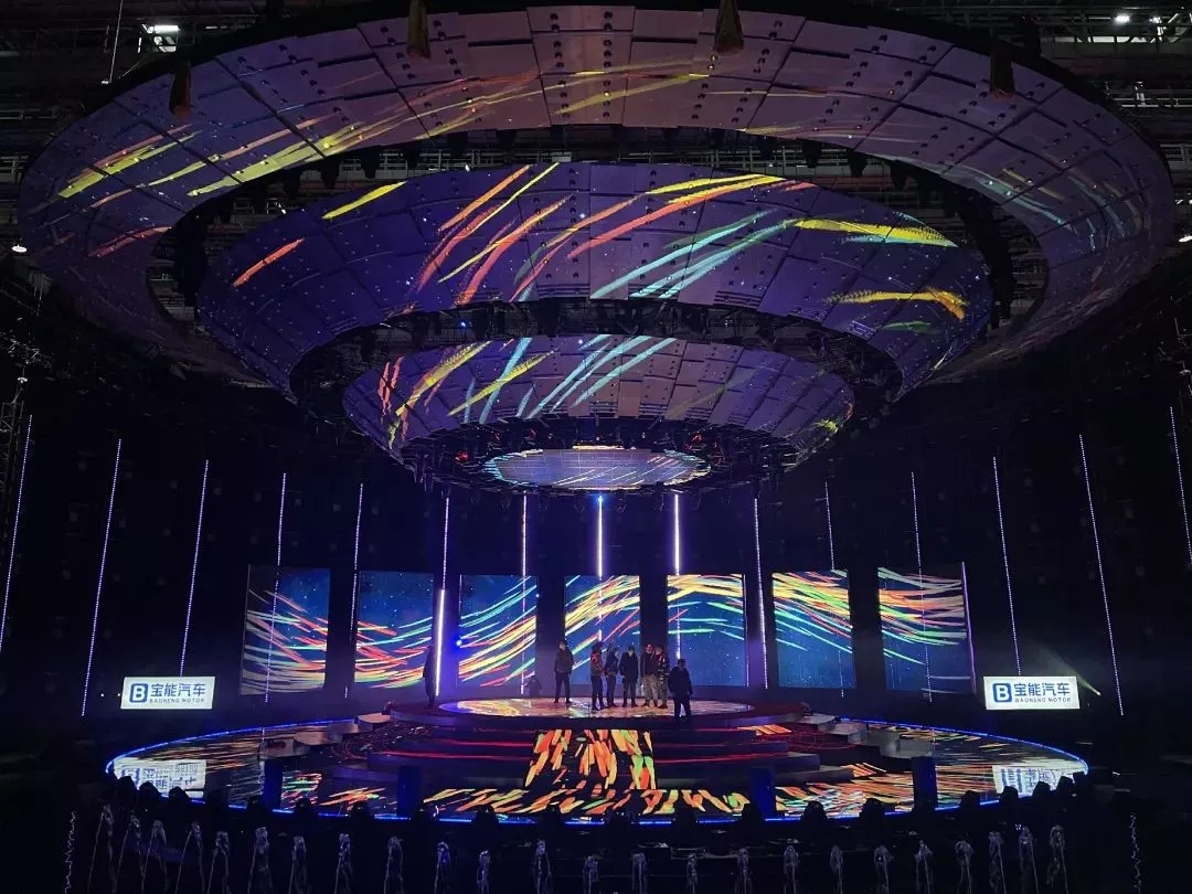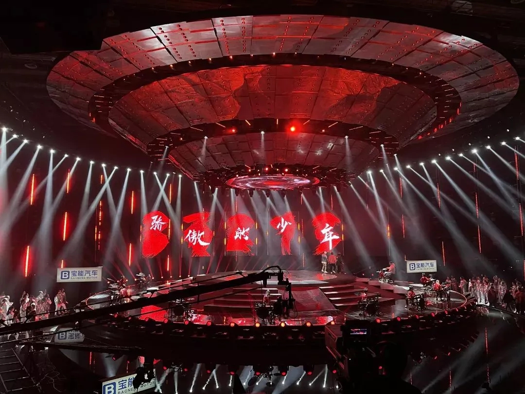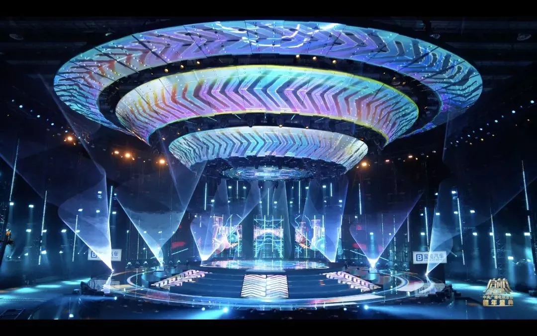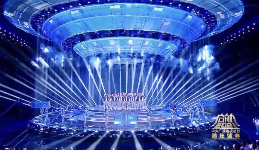 這次盛會的燈光設(shè)計圍繞“啟航·看中國”主題設(shè)計出一艘360度的太空飛船,燈光設(shè)計在此基礎(chǔ)上將太空飛船進(jìn)行了270度的視覺包裹,將主背景設(shè)計為矩陣燈墻,為舞臺整體視覺提升高度。