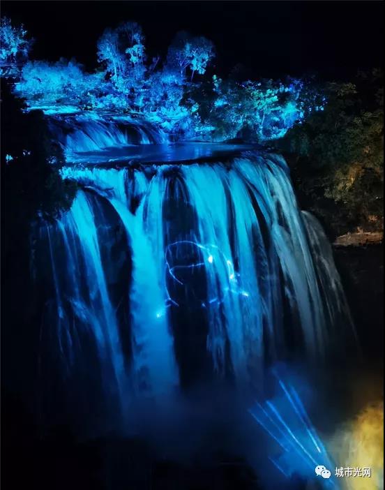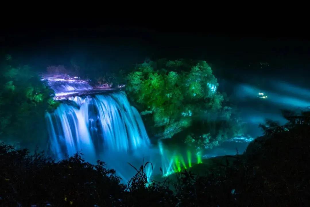 《黃果樹夜游》是國內(nèi)首個自然峽谷5A景區(qū)沉浸式全景體驗光雕影像秀。