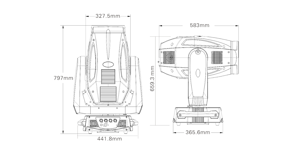 可從控臺完成更改DMX地址碼,遙控開關(guān)燈泡,機器重設(shè),聲控模式的轉(zhuǎn)換等功能