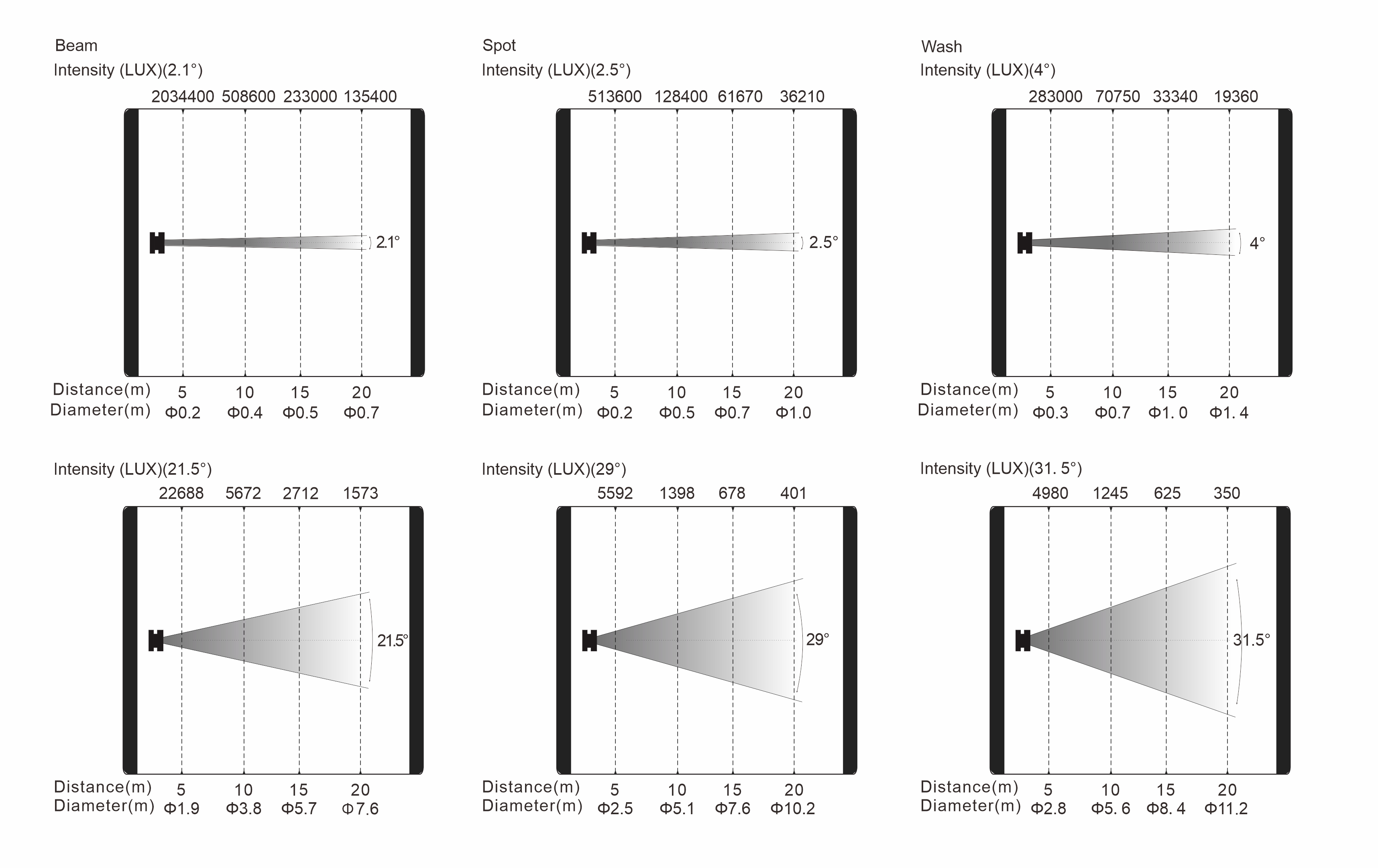 變焦范圍:光束模式:2.1°-21.5°,圖案模式:2.5°-29°,染色模式:4°-31.5°