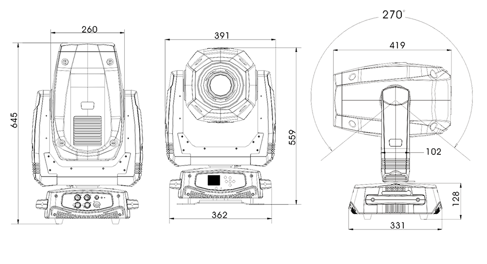 1個(gè)色片盤:6個(gè)插拔式色片+白光,半色效果,帶雙向旋轉(zhuǎn)的彩虹效果