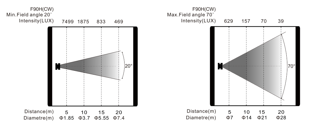 變焦范圍:12.5°- 60°(光束角),20°- 70°(光斑角)