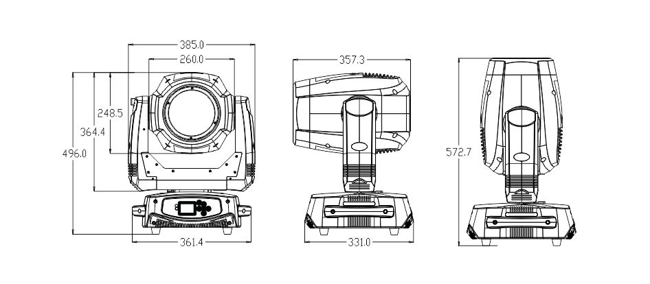 可從控臺(tái)完成更改DMX地址碼,遙控開關(guān)燈泡,機(jī)器重設(shè)等功能