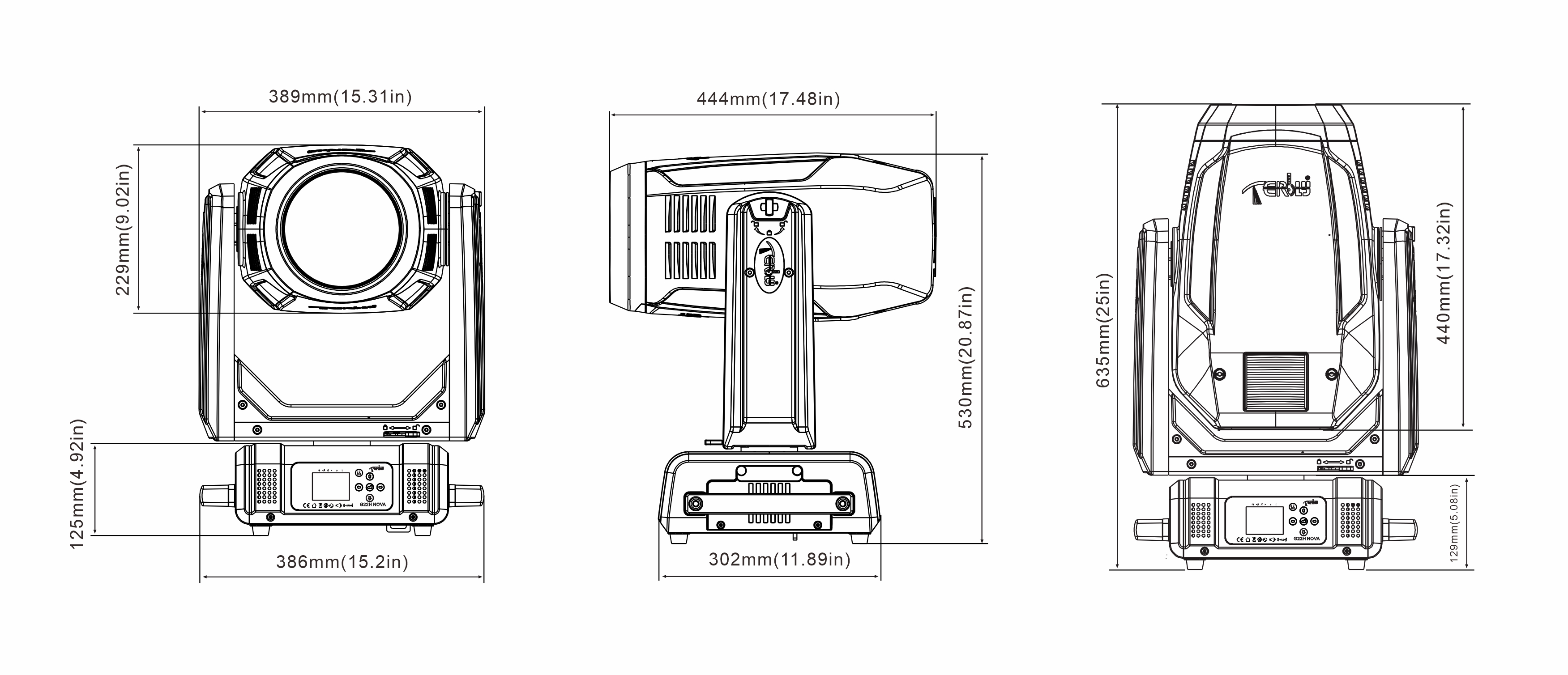 變焦范圍:光束模式:2.2°-20°,圖案模式:3°-30°