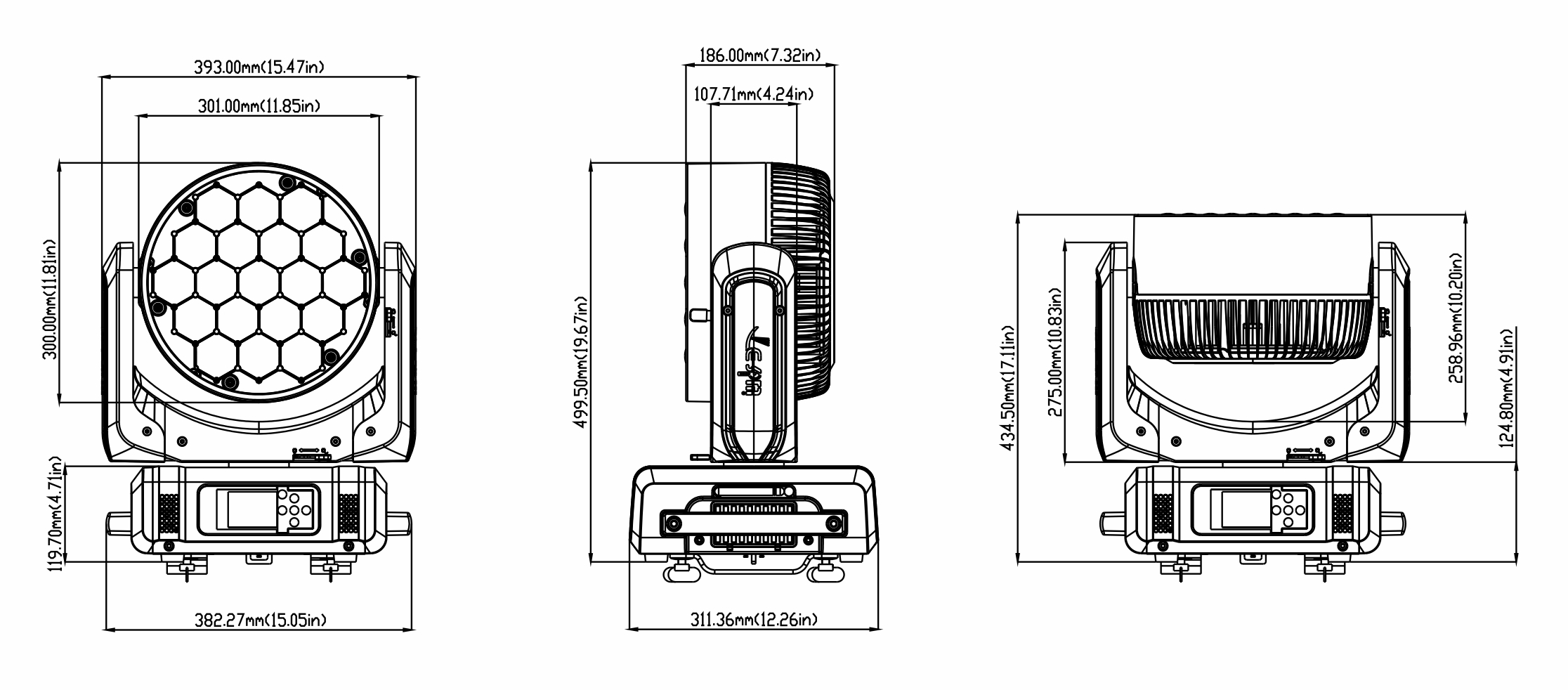 可從控臺完成更改DMX地址碼, 遙控LED, 機(jī)器重設(shè)等功能