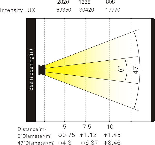 切割效果:一組由4個切角片組成可控制的光斑切角系統(tǒng),整個切角系統(tǒng)可做90°旋轉(zhuǎn)