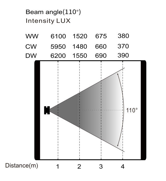 變焦范圍:光束角:110°,光斑角:163°