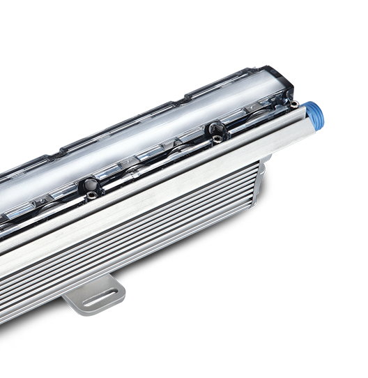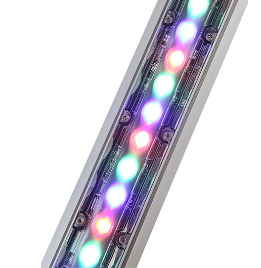 ELV-G 系列RGB / RGBW / RGBA /DW(冷白+暖白) LED染色燈是一款高功率條形燈,單臺燈長度可選1英尺(305mm)和4英尺(1229mm),采用國際通用的DMX512信號控制,順滑的線性調(diào)光,高亮度輸出, 高檔的外觀設(shè)計(jì),可選不同角度的柔光片以及擋光防眩板,是戶外戶內(nèi)渲染照明,面光燈的最佳選擇。