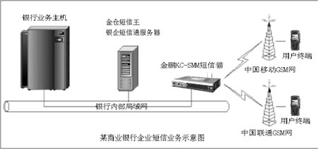 2004年7月,某地級(jí)市商業(yè)銀行采用了金鵬KC-SMM短信貓和“金倉(cāng)短信王銀企短信通解決方案”軟件搭建了企業(yè)級(jí)的短信服務(wù)體系。鑒于業(yè)務(wù)量并非很大,所以盡管整個(gè)商業(yè)銀行有近三百個(gè)辦公網(wǎng)點(diǎn),在設(shè)備上該商業(yè)銀行仍然只采用一套軟硬產(chǎn)品!敖瘗i的短信平臺(tái)產(chǎn)品目前在北方鋪開的時(shí)間并不長(zhǎng),所以在價(jià)格上有一定的傾斜,我們商業(yè)銀行購(gòu)買的產(chǎn)品,價(jià)格比較便宜!痹撋虡I(yè)銀行信息部某負(fù)責(zé)人說。