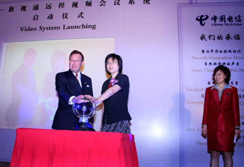 在新聞發(fā)布會儀式上,來自中國電信和北京國賓酒店信息中心的技術(shù)人員為來賓們現(xiàn)場演示了這套視頻會議系統(tǒng),國賓酒店安裝的這套全球先進的“新視通”視頻會議系統(tǒng),是一款高檔分體式的會議室型終端服務(wù)體系,它可以提供非常靈活可靠及強大的功能,完全可以滿足各種會議室、教室或中小規(guī)模的會議應(yīng)用環(huán)境。采用專門集成的音響系統(tǒng),利用“新視通”的專利技術(shù),提升了音頻質(zhì)量。通過雙揚聲器和雙麥克風,可以清晰的聽到每個發(fā)言人的聲音,輕松辨別多個發(fā)言人的同時談話,感受純正、豐滿的音頻質(zhì)量。與其他運營商推出的視訊業(yè)務(wù)相比,