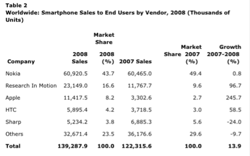 2007年6月29日,iPhone如期發(fā)布,其強(qiáng)勢(shì)的綁定分成模式曾遭到了來(lái)自各路分析師的質(zhì)疑,然而這些都沒(méi)有擋住它的熱銷, 市場(chǎng)調(diào)研機(jī)構(gòu)Gartner報(bào)告顯示,截至2008年底,蘋(píng)果在全球范圍內(nèi)共計(jì)銷售了約1200萬(wàn)部iPhone ,整年銷量增長(zhǎng)245%,是全球智能機(jī)銷量增幅最大的手機(jī)。