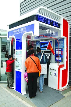 在世博園區(qū),除了在中國(guó)電信的綜合信息亭上查詢信息,還可以到電信的世博營(yíng)業(yè)廳體驗(yàn)快樂。玩玩魔屏,看看3D高清IPTV,還有移動(dòng)極速寬帶網(wǎng)供你飛翔。