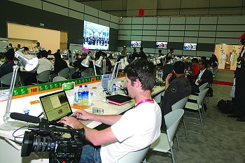世博的主新聞中心一開門便受到媒體的“熱捧”。中國(guó)電信的后臺(tái)信息系統(tǒng)顯示,世博主新聞中心的數(shù)據(jù)量一直居高不下,因?yàn)橛浾哒χ米烂嫔系?00M有線寬帶高速上網(wǎng)、收發(fā)稿件、傳送采訪的視頻。在世博主新聞中心一樓記者工作大廳,想在300個(gè)坐席里找個(gè)空位可不是容易的事情。