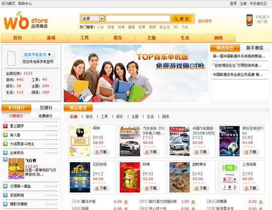 目前聯(lián)通應(yīng)用商店共有1125款應(yīng)用,其中包含445款游戲、208款閱讀、294款主題、生活軟件113款、工具軟件49款,娛樂應(yīng)用16款。目前仍處于測(cè)試階段,還沒有應(yīng)用開發(fā)商進(jìn)行大規(guī)模的程序提交。