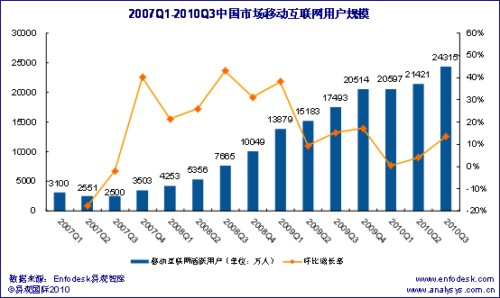 2010年第3季度中國移動互聯(lián)網(wǎng)用戶規(guī)模達(dá)2.43億