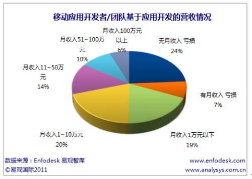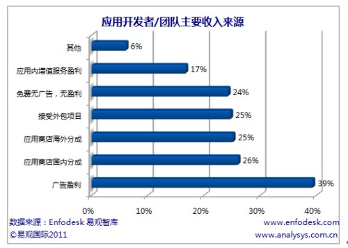 易觀國(guó)際(Analysys International)分析認(rèn)為應(yīng)用開(kāi)發(fā)者難以獲取盈利分成的主要原因在于用戶對(duì)應(yīng)用本身沒(méi)有付費(fèi)下載習(xí)慣,應(yīng)用商店缺少對(duì)應(yīng)用的推廣,但應(yīng)用開(kāi)發(fā)者難以盈利也和移動(dòng)應(yīng)用同質(zhì)化嚴(yán)重,難以被用戶認(rèn)可本身強(qiáng)相關(guān)。