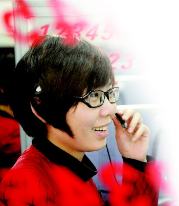 每人面對兩臺電腦,一臺記錄信息,一臺隨時解答查詢。