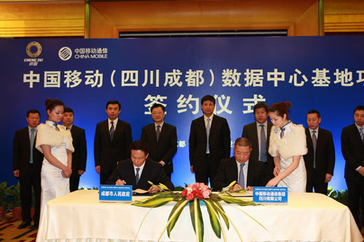 2012年2月22日,中國移動(dòng)(四川成都)數(shù)據(jù)中心基地項(xiàng)目在四川成都正式簽約啟動(dòng)。成都市政府葛紅林市長、劉超常委、白剛副市長與中國移動(dòng)通信集團(tuán)公司魯向東副總裁、中國移動(dòng)四川公司簡勤總經(jīng)理等出席簽約儀式,成都市政府與中國移動(dòng)四川公司代表雙方簽署合作協(xié)議。