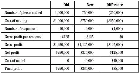 請(qǐng)注意,郵寄的純利潤(rùn)增加了$125,000,甚至你扣除由于數(shù)據(jù)采集而產(chǎn)生的軟件、硬件即人力資源方面的$40,000,純利潤(rùn)還增加了$85,000。建模的投入轉(zhuǎn)化成了200%的收益,這遠(yuǎn)遠(yuǎn)超過了BB&CC對(duì)這一項(xiàng)目的ROI要求。