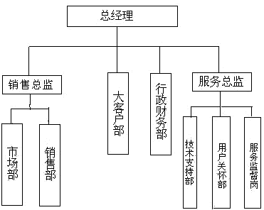 Z公司2002年之前的組織結(jié)構(gòu)如圖1所示,其中直接關(guān)系CRM的兩個崗位是銷售跟蹤崗與服務(wù)監(jiān)督崗。銷售跟蹤崗的主要職責(zé)是:客戶來人來電的接待,將有意向客戶的信息及時分配給公司業(yè)務(wù)員。服務(wù)監(jiān)督崗的主要職責(zé)是: 公司技術(shù)支持人員上門服務(wù)的及時性、服務(wù)質(zhì)量的每日監(jiān)督通報以及新用戶的培訓(xùn)效果、使用效果、服務(wù)滿意度的回訪。從表面上看,Z公司是一家管理規(guī)范、目標(biāo)責(zé)任明確的公司,而且在項目組深入了解Z公司后,也承認(rèn)它與同行相比確實是一家上佳的公司。