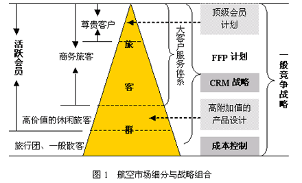 國(guó)內(nèi)主要航空公司都進(jìn)一步明確了市場(chǎng)細(xì)分與戰(zhàn)略組合的關(guān)系,凸現(xiàn)“以客戶(hù)為中心”的經(jīng)營(yíng)理念,如圖1所示。