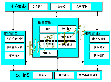 以客戶管理、銷售、服務(wù)、營(yíng)銷、市場(chǎng)之間的協(xié)同工作(CooperativeWorking)為基礎(chǔ)目標(biāo);