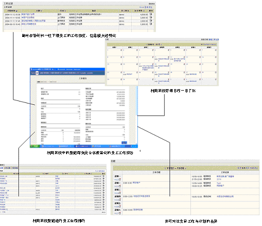 如果你考慮的是這么多詳細(xì)的量化指標(biāo)如何能夠準(zhǔn)確獲得,那么管理軟件應(yīng)該是一個(gè)很好的工具。TurboCRM內(nèi)置的“工作報(bào)告”、“全方位員工工作記錄查詢”,和前面提到的所有指標(biāo),都可以方便地進(jìn)行組合,形成每個(gè)員工的工作狀況數(shù)字化報(bào)表,可以為部門領(lǐng)導(dǎo)查閱。采用TurboCRM的員工管理,企業(yè)管理者能夠: